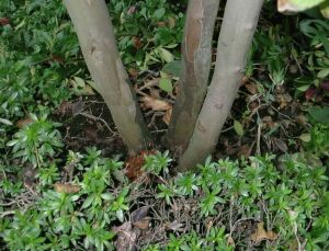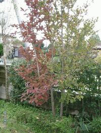 もともと紅葉するのは、その葉に紅葉成分だけが残ってそうなると聞きました。が、ナツツバキは紅葉する種類でしたっけ?沙羅はうちにもあるのですが。覚えてないな・・・。幹も太くて結構年数がたってるようですね。これはもともと株が3つじゃないかと思います。この木は高さが大きいもので30mくらいになりますが、そこまでじゃないようですし、下草がまだ枯れてないので冷え込みもさほどじゃないようですね。下草というより、つつじか何かですか?右側は紫蘭かあやめの類にも見えるのですが。これらの葉が枯れてなくて沙羅だけの葉が変色してるのでもしかしたら虫か病気も疑ったほうが良いかも知れません。 それは接ぎ木して育った木ではないかと思いますが・・・。 ナスやカボチャなどの野菜類、ブドウ、桃、バラなどの花木類は接ぎ木した苗を売っていることがあります。のんきはガーデニングが趣味なので経験があるのですが、接ぎ木した台木から若芽が出てきて、大きくなることがよくあります。これは早く摘み取らないと接いだ苗をしのぐ勢いで育ちます。もともと丈夫な物を台にしているので、当然ですが。この木はよく見ると株立ちになっていて、枝の一部ではなく幹から上全部が紅葉しているようなので、台木から出た芽がそのまま育ち同時に大きくなったのではないでしょうか。 いくつか原因が考えられると思います。一本の根から生えているように見えるのですが、実は左側の一本だけが別の根を持っている。また、太陽のあたり方に違いが有るため、紅葉の時期がずれていることも考えられます。 あとは、家の建物からの距離が違うため、周囲の温度が変わって、やはり紅葉の時期がずれているのではないでしょうか。いずれにしても「ナツツバキ」は、落葉広葉樹のため、いずれ、右側二本の木も紅葉して葉が落ちるのだと思いますが、この時期が上記のような理由によりずれていることが原因だと思います。 紅葉しているのは南側ではありませんか? 1本の幹の木でも、日の良くあたる側(普通は南側ですが、周辺の建物の位置などで変わります)から順に紅葉しますよ。 他の二本にいじめられているんでしょう。 |