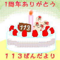 113ばんだよりは3回目の誕生日を迎えました。とってもかわいいイラストでうれしいです。管理人が作ったケーキよりクオリティが断然高いです(笑) |
