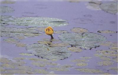 写真は幌延(ほろのべ)のビジターセンターで撮りました。雨が降っていたので、その場では何のコウホネか区別がつきませんでしたが、現像してみたら中心が赤っぽく写っていたので、どうやらこれはオゼコウホネだったようです。