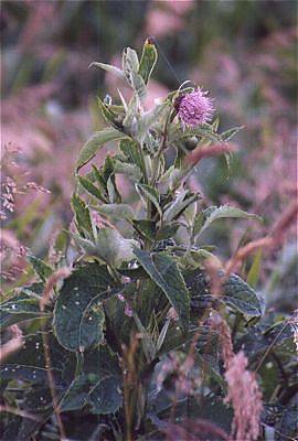 別名エゾアザミとも言いますが、千島や北海道にあるアザミということから千島薊(ちしまあざみ)の名がついています。札幌市内の森林公園でも一般的に見られるアザミですが、豊富(とよとみ)の海岸近くの草原にたくさん咲いていました。全体的にずんぐりした感じに見えるのは、潮風のせいかもしれません。