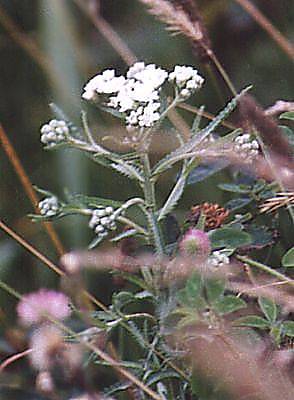 写真のノコギリソウは、豊富(とよとみ)の海岸近くの牧草地に生えていたものです。道路からかなり離れていたのですが、望遠レンズを使ってなんとか写すことができました。