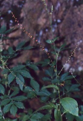 花の穂の様子を「のし袋」の水引(みずひき)に見立ててこの名がつけられました。赤く見えるのはガクで花弁はありません。森林公園内には今ではあまり沢山はありませんが、所々で見ることが出来ます。実際に見るともっと赤いのですが、写真にするとどうしても赤い色が跳んでしまいます。これでも、比較的色が残っている方だったりします。昔は、秋になれば大きな群落を作って咲いていたのですが、いったいどこに行ってしまったのでしょうか。