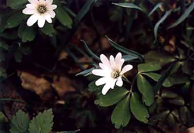 アズマイチゲは「東一華」の読みで関東産を意味していますが、北海道内でも広く分布しています。葉が全体に円く柔らかな感じがします。もうひとつ、同じキンポウゲ科でキクザキイチゲ(菊咲一華)というのがあって、ほとんど同じ時期に、同じような所で、同じような花が咲きます。花だけみているとほとんど区別が付きません。キクザキイチゲは、アズマイチゲに比べて葉が尖っているので、ようやく見分けがつくくらいです。 いずれにしても、花茎の先にひとつだけ花がついて、風に吹かれるままに揺れ動き、春を迎える優しい花です。