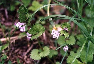 茎は初めは直立して、高さ15〜30cmくらいになった後、倒れて地面を這うように伸び、長さが1mくらいになります。「垣通(かきどおし)」という名は、つるが伸びて垣根をくぐり抜けるほど良く成長する、という所からつきました。別名「疳取草(かんとりそう)」とも言いますが、これは茎や葉を煎じたものが、子供の疳(かん−引き付け)の薬として用いたところから来ています。葉の付け根に2〜3個、少し赤みがかった紫の花が咲きます。