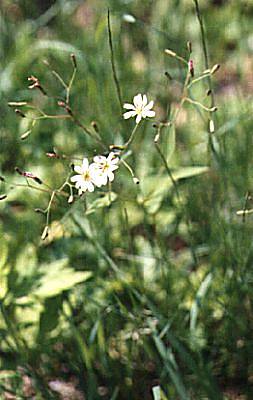 ハナニガナとほぼ同じ場所に生えていることが多いです。一種の突然変異種のようで、白い舌状花の数も6〜10個までいろいろあります。草を千切ったときに出る白い乳液は、確かに苦い味がしました。 つぼみの時は少しピンクがかっていて、開くとクリーム色がかった白の花を咲かせます。ハナニガナよりは見る機会が少ないですが、それほど珍しい植物ではありません。白い分、ニガナより清楚な印象があるかもしれません。