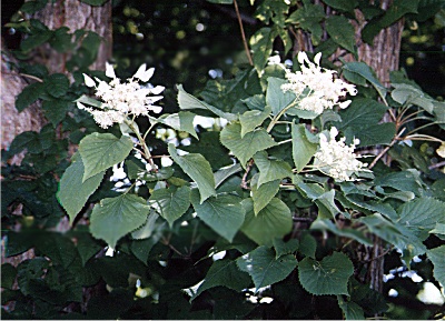 茎から気根(植物の地上部分から生じて、空気中に現れている根)を出して樹の幹や岩に絡みつくことから岩絡(いわがらみ)の名がつきました。エゾアジサイやツルアジサイと同じで、たくさんの小さな両性花の回りに大きな飾り花がつきます。