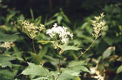鬼下野(おにしもつけ)エゾシモツケソウと同じく、栃木県(下野国)で発見されたシモツケの花に似ている草の意味からこの名がついたと言われています。「オニ」がついているのは、この仲間の中で一番大きくなるからです。