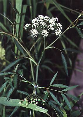 毒芹(どくぜり)は、外形は食用にできるセリに似ていますが、全草が猛毒であることからついた名です。葉も花もセリに似ていますが、全体にセリより大きな事から、大芹(おおぜり)とも呼ばれます。特に地下茎は毒性が強く、誤って食べると死ぬこともあります。 この写真は、いつもの野幌森林公園ではなくて、南区にある西岡水源地を中心とする西岡公園で撮りました。西岡公園は半分くらいが木道もある湿地帯で、あまり広くはありませんが湿地を好む野の花が色々と見られます。7月後半〜8月上旬の木道沿いはドクゼリが満開になります。