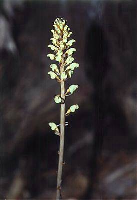 鬼之矢柄(おにのやがら)は、まっすぐに伸びた茎を鬼の使う矢に見立てた所からついた名です。葉緑素を持たず、葉もないラン科の植物で、腐った木などに寄生します。緑色がかったクリーム色の花は美しくはありませんが、形状が面白くて目を引かれます。 写真は西岡公園で撮りました。野幌森林公園にも咲いているらしいのですが、私はまだ見たことがありません。7月の中頃に西岡公園に行ってみたら、散策路沿いや林の中でニョキニョキと生えているのを何本も見つけました。あるところにはあるものだと、妙に感心しながら撮影しました。本当に面白い植物です。