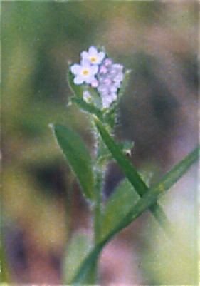 勿忘草(わすれなぐさ)は、歩道の割れ目とか、土がたまっている所などでもよく見ます。森林公園内にこういう帰化植物が増えるのは、あまり歓迎したくないところですが、人がたくさん入るところではどうしようもないですね。犬などを連れて入らないように、と看板があるにも関わらず、散策路を犬の散歩道だと解釈している人も多いのですし。薄紫の小花が妙に可愛らしいだけに、なんとも複雑な気分で眺めることになります。 本州だと春の花だと思いますが、北海道では初夏の花です。写真のワスレナグサは、6月初旬に撮ったもので、本当に咲き始めだったと見えて、草丈10cmくらいで咲いていました。あまりに小さすぎてピントが合わなかったのですが、あまりに可愛いので載せてみることにしました。